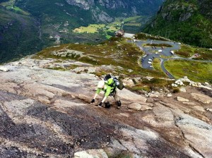 Lysebotn przywitało nas mokrą aurą. Po paru dniach w Norwegii byliśmy jednak już do tego przyzwyczajeni, więc nawet nie zrobiło to na nas większego wrażenia. Zresztą to wszystko to i tak pikuś w porównaniu do tego, co było jeszcze przed nami… Kolejnym punktem naszej wyprawy był Kierag, powszechnie znane turystycznie miejsce, gdzie między górami wisi głaz, a ludzie robią sobie na nim zdjęcia prezentując swoją odwagę i wszechmocne zdolności. 😉 Brzmi zacnie, więc naturalnym jest, że ten punkt podróży musiał się znaleźć i w naszych planach.